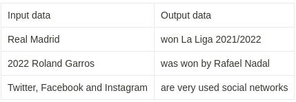 So, what the model will do will be to learn to relate the input data with the output data (the processes to do this are very sophisticated, we will see them later), so that when a new input data arrives, it will have learned well enough to be able to predict what the output will be. At that moment, what we will do will be to write "Atlético de Madrid" and it will complete it with something like "it has a shield with red and white stripes".